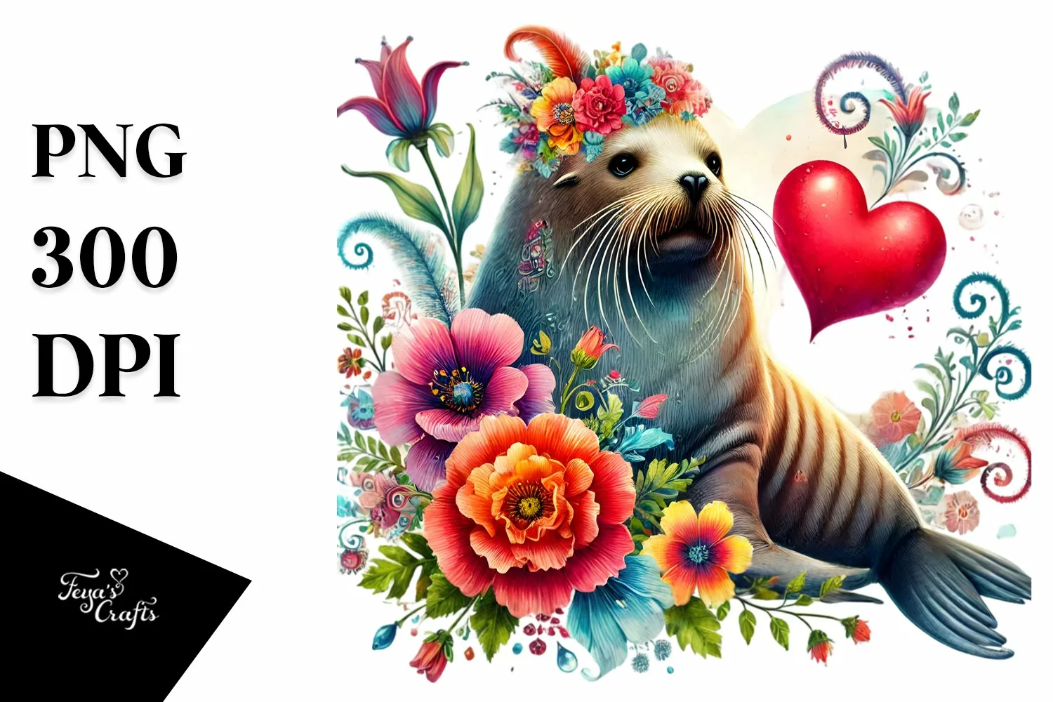 Colorful Adorned Walrus Sitting on a Flower PNG