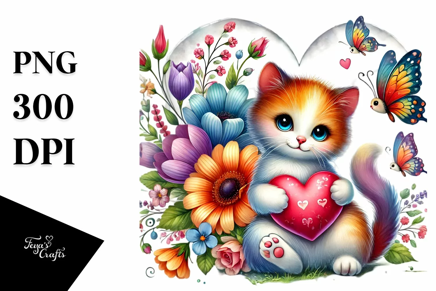 Sticker Summer Flower Heart Png Cat Sublimation Adorned Digitalpainting