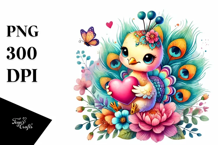 Watercolor Cute Colorful Floral Flower Heart Boho Peacock Digitalpainting