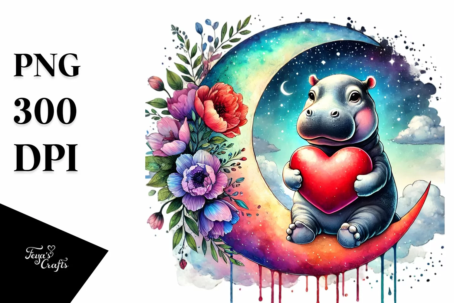 Watercolor Artistic Heart Moon Cow Digitalpainting