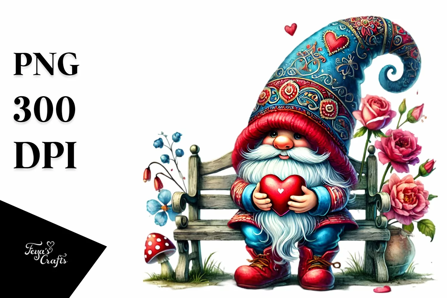 Similar Design Products to Detailed Valentines Gnome on Bench PNG