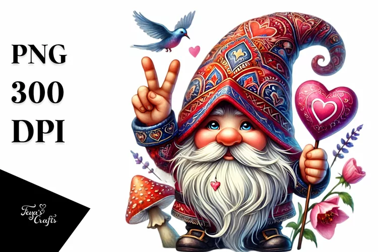 Valentines Gnome Watercolor Victory PNG