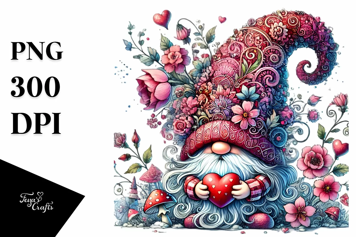 Similar Design Products to Colorful Watercolor Gnome Hearts PNG