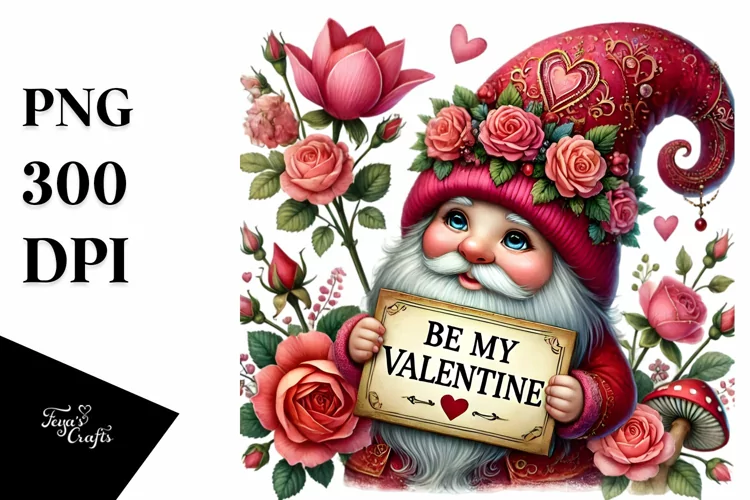 Watercolor Sticker Summer Cute Hearts Flower Png Sublimation Gnome