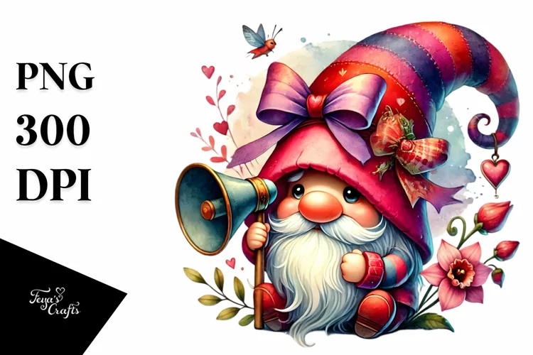 Similar Design Products to Valentines Gnome with Detailed Hat, High-Res PNG