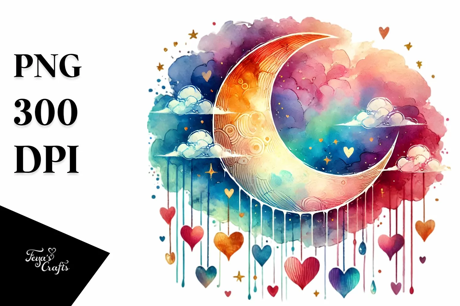 Watercolor Hearts Washed Hanging Halfmoon Digitalpainting