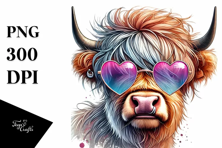 Large Cool Heart Detailed Sunglasses Highland Calf Whitebackground Digitalpainting