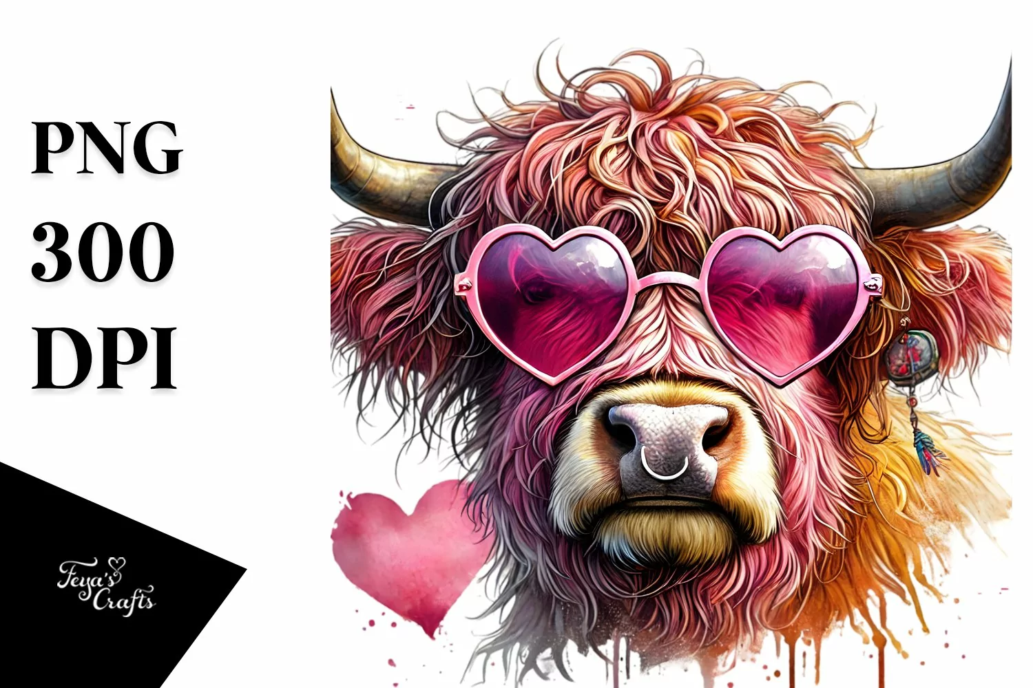 Watercolor Colorful Sunglasses Cow Highland Sublimation Whitebackground Digitalpainting Victorysign