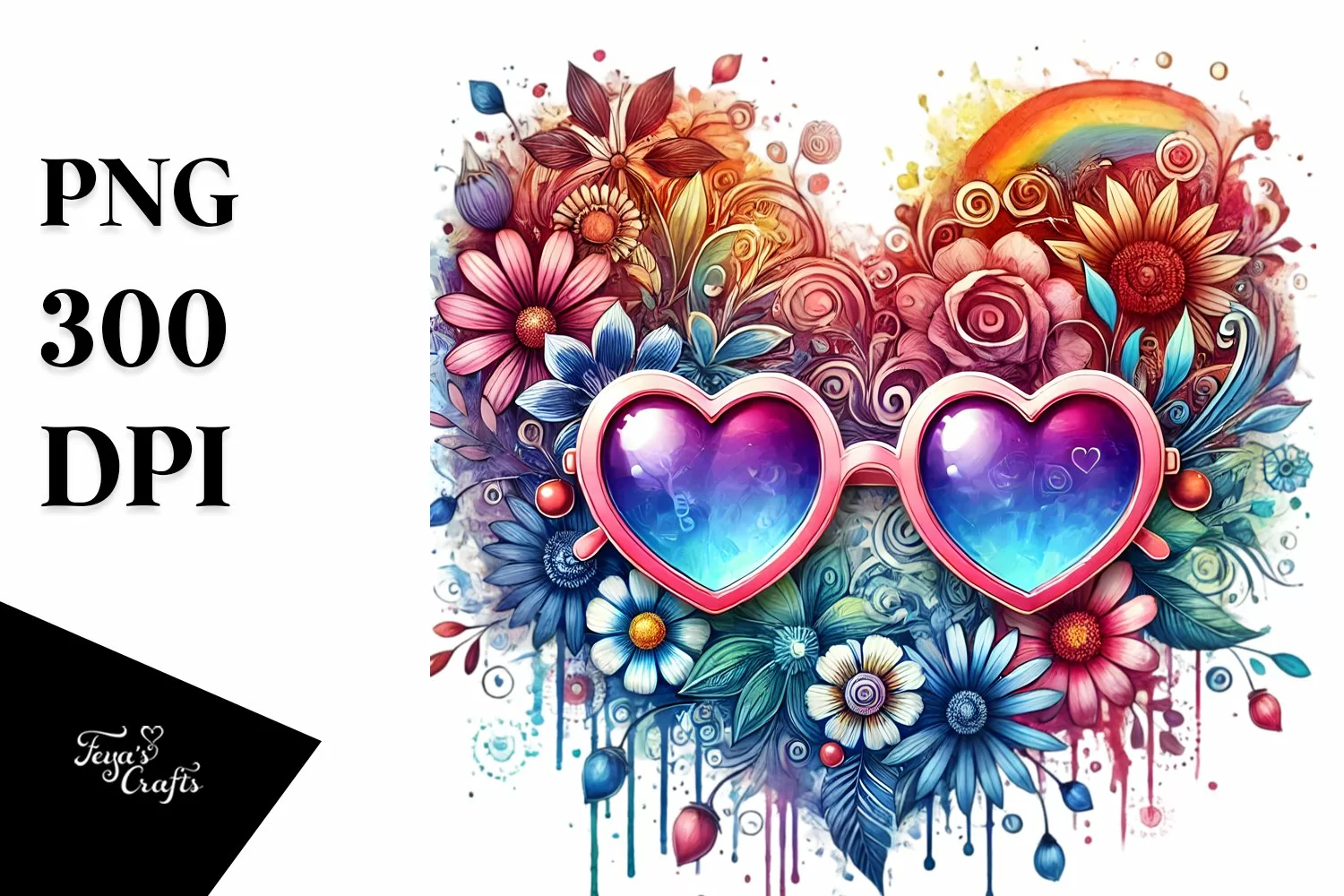 Large Sticker Summer Flower Heart Png Sunglasses Sublimation Victorysign