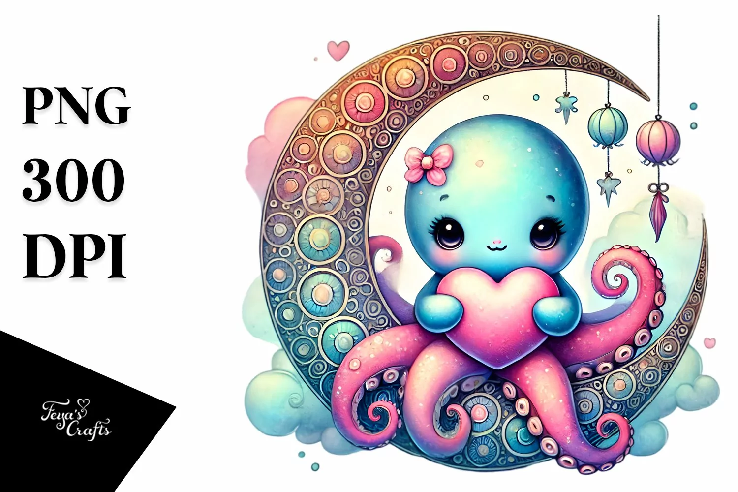 Baby Octopus on Half Moon PNG example image 1