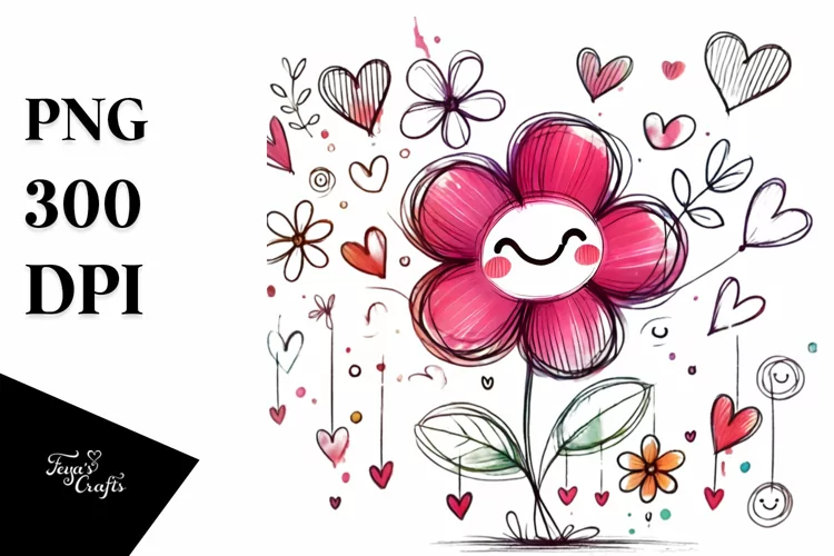 Sticker Summer Hearts Flower Png Smiling Sublimation Scribbled