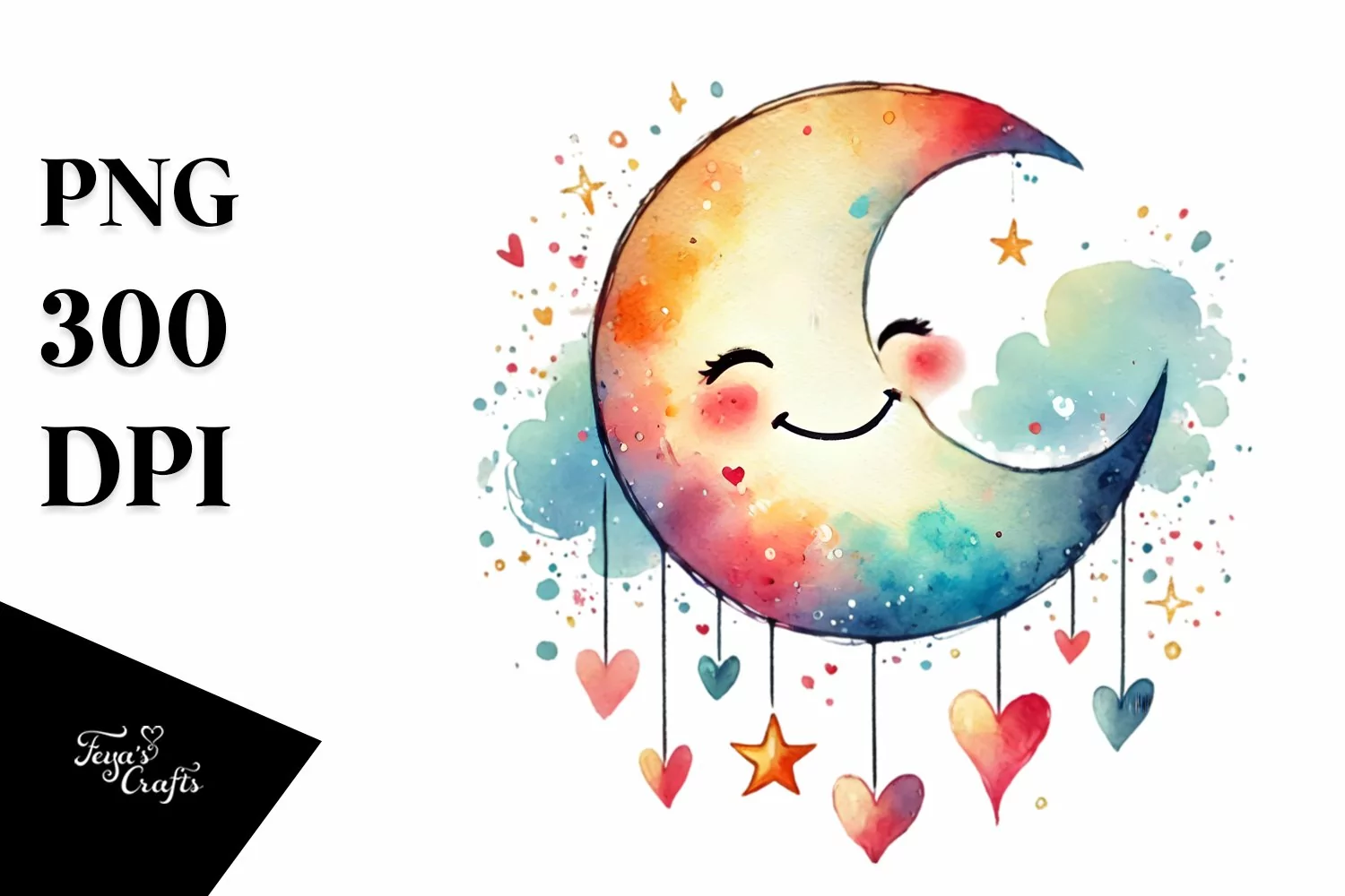 Similar Design Products to Smiling Half Moon with Hearts PNG