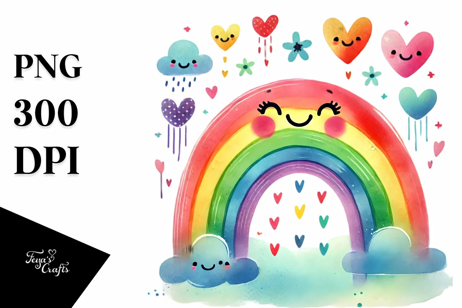 Similar Design Products to Colorful Rainbow with Hearts, PNG