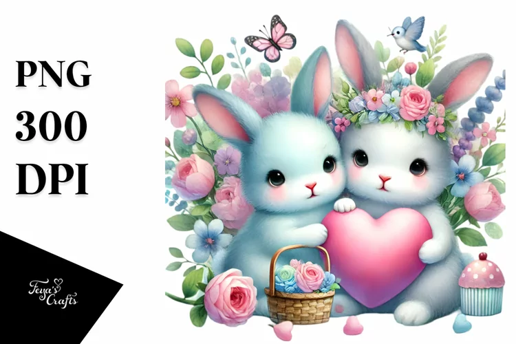 Watercolor Heart Whitebackground Digitalpainting Babybunny