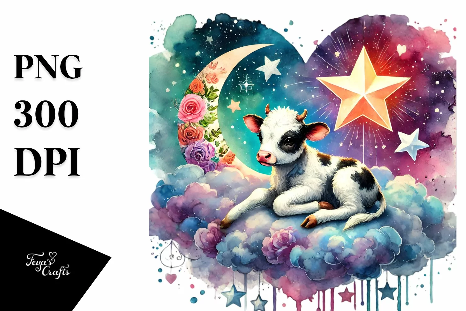 Watercolor Heart Star Whitebackground Digitalpainting Babycow