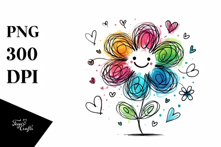 Sticker Summer Hearts Flower Png Smiling Sublimation Scribbled Digitalpainting