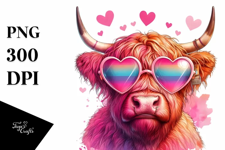 Colorful Clipart Png Whitebackground Sorounded Victorysign Pinkhighlandcow Heartshapedsunglasses