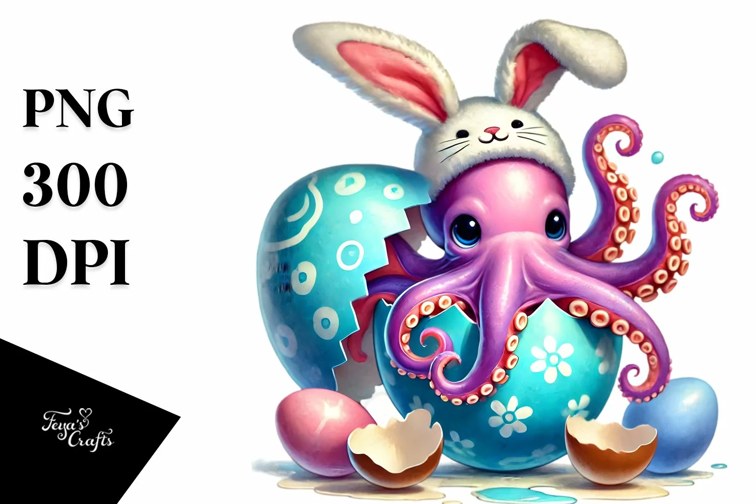 Watercolor Whitebackground Easteregg Bunnyears Babyoctopus