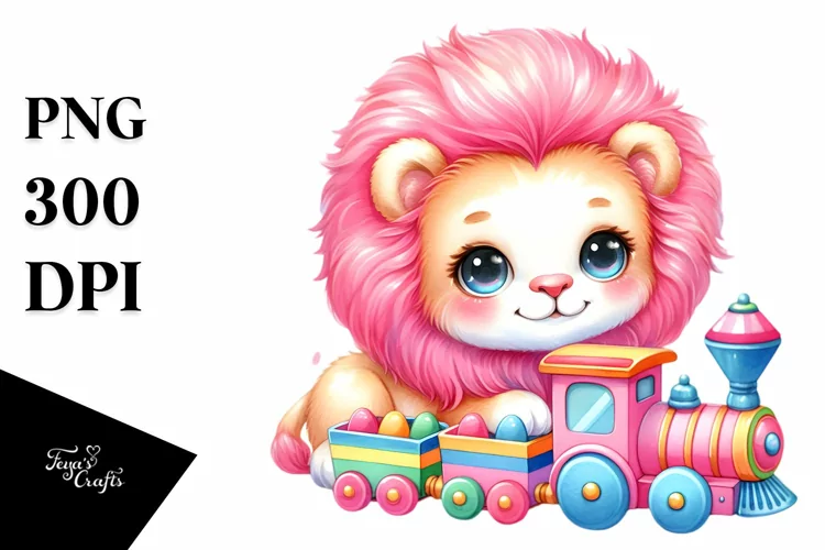 Watercolor Cute Baby Colorful Train Lion Smiling Pink-ish