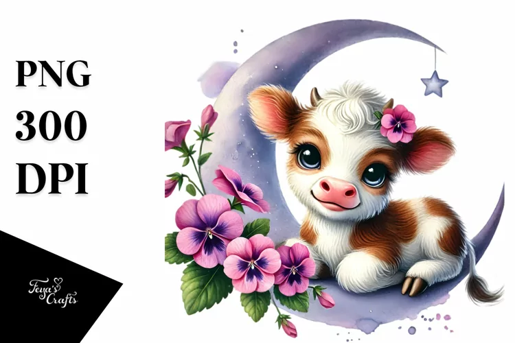 Similar Design Products to Baby Highland Cow with Impatiens, Watercolor PNG