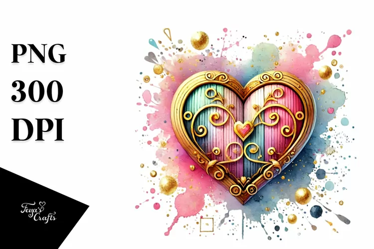 Similar Design Products to Colorful Heartmade of with Goldern Insertions PNG