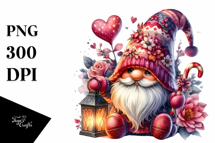 Detailed Valentines Gnome with Large Hat PNG example image 1