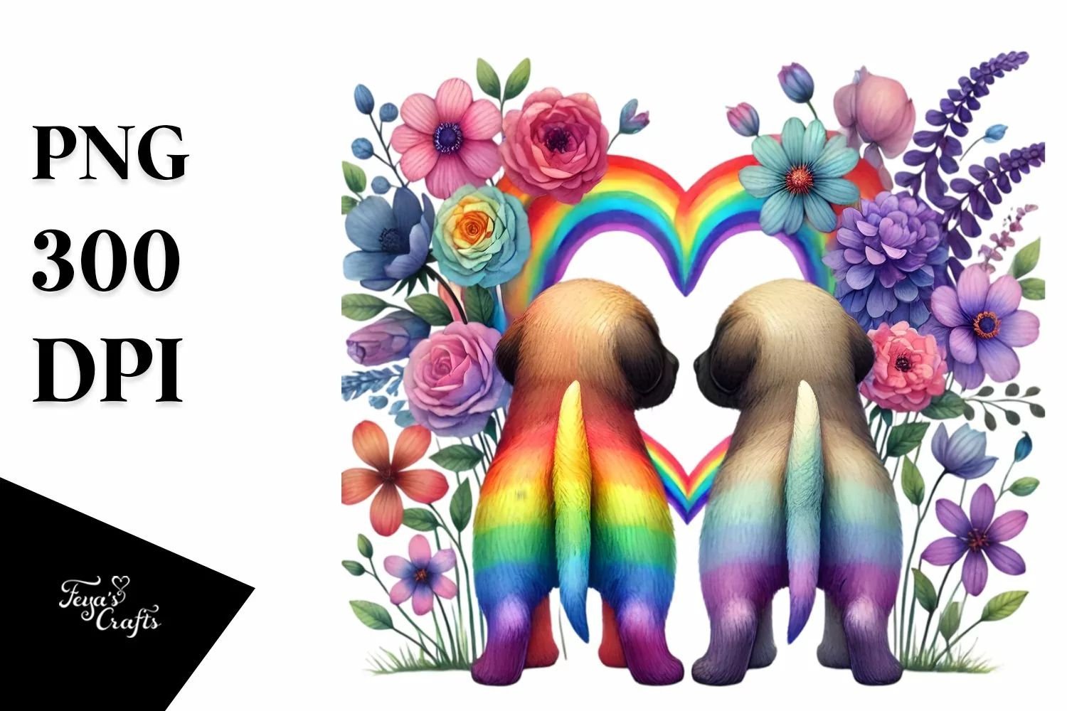 Sticker Summer Flower Heart Png Rainbow Mastiff Sublimation