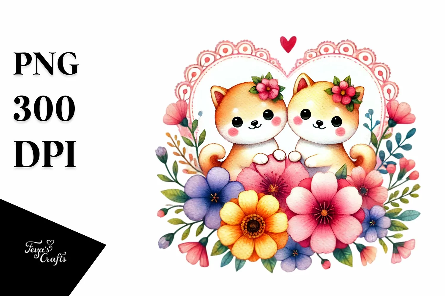 Cute Shiba Inu Hearts Unity PNG example image 1