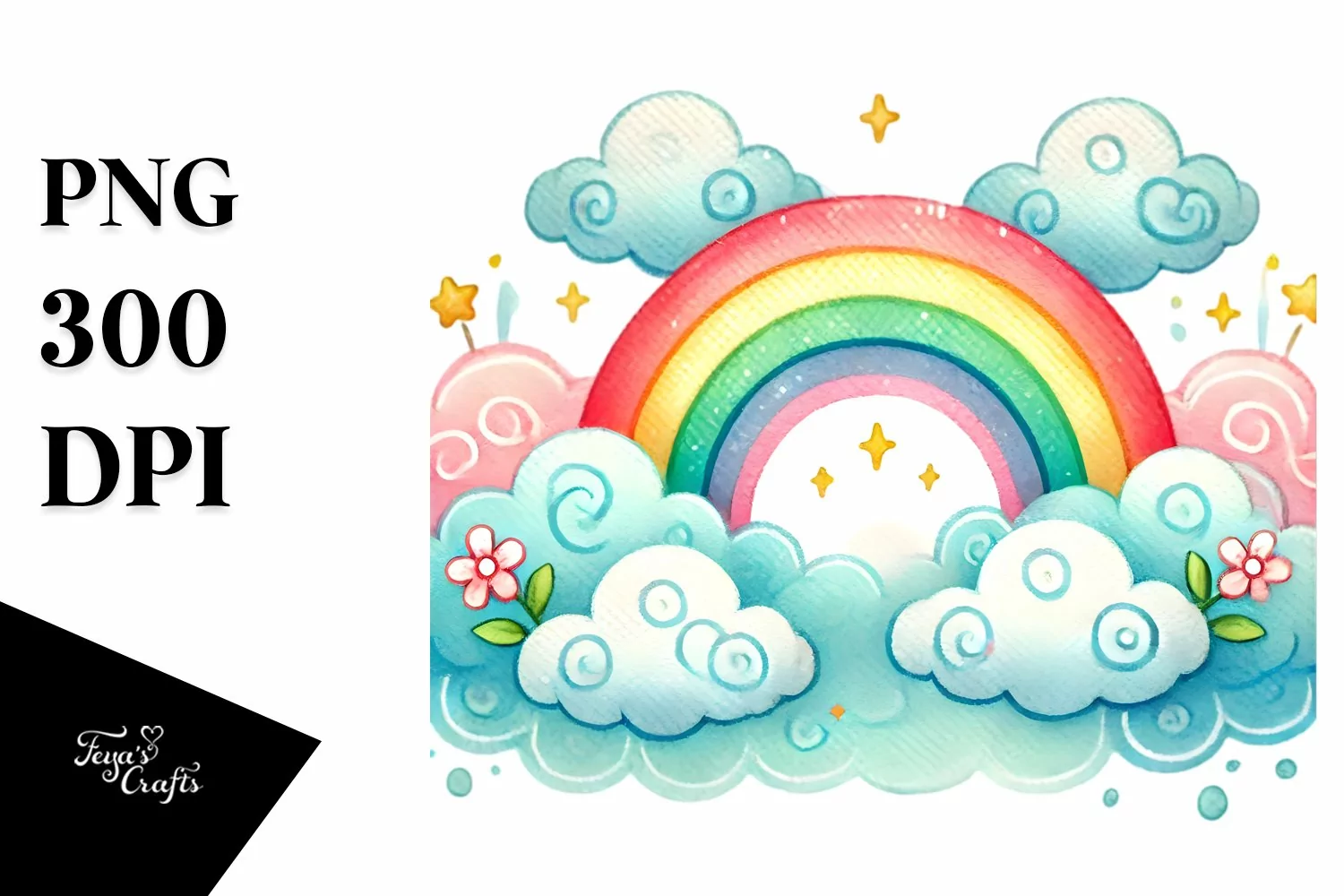 Sticker Summer Cute Flower Png Rainbow Clouds Sublimation Between