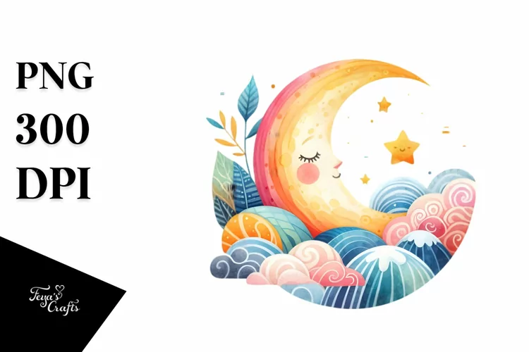 Watercolor Simple Whimsicalmoon Smilingcolorfull