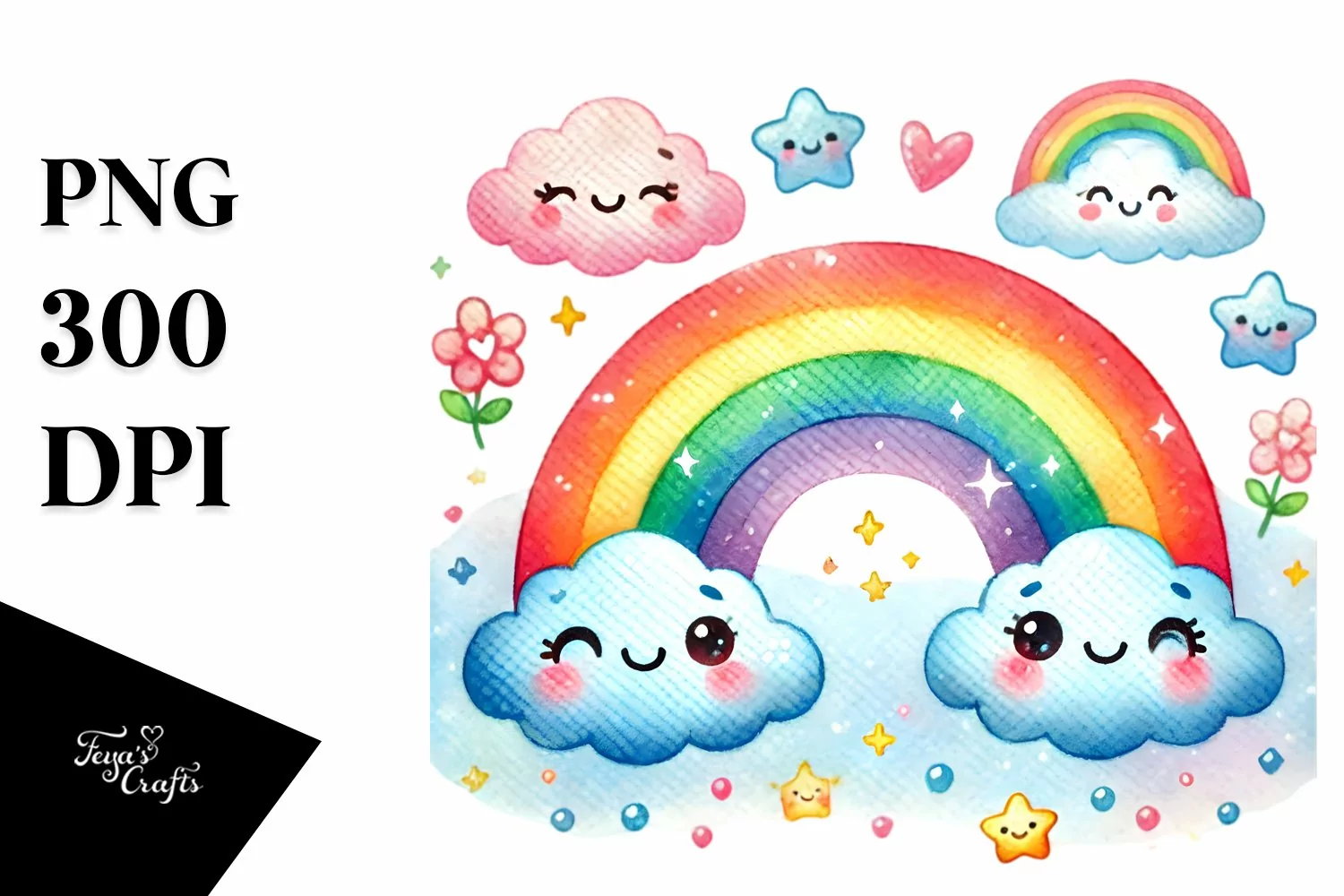 Cute Rainbow Watercolor, Colorful PNG example image 1
