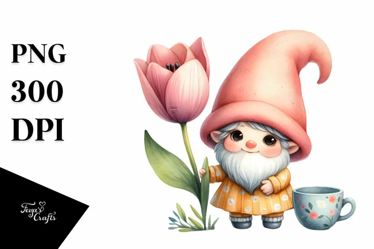 Similar Design Products to Cute Baby Gnome with Tulip, Transparent PNG