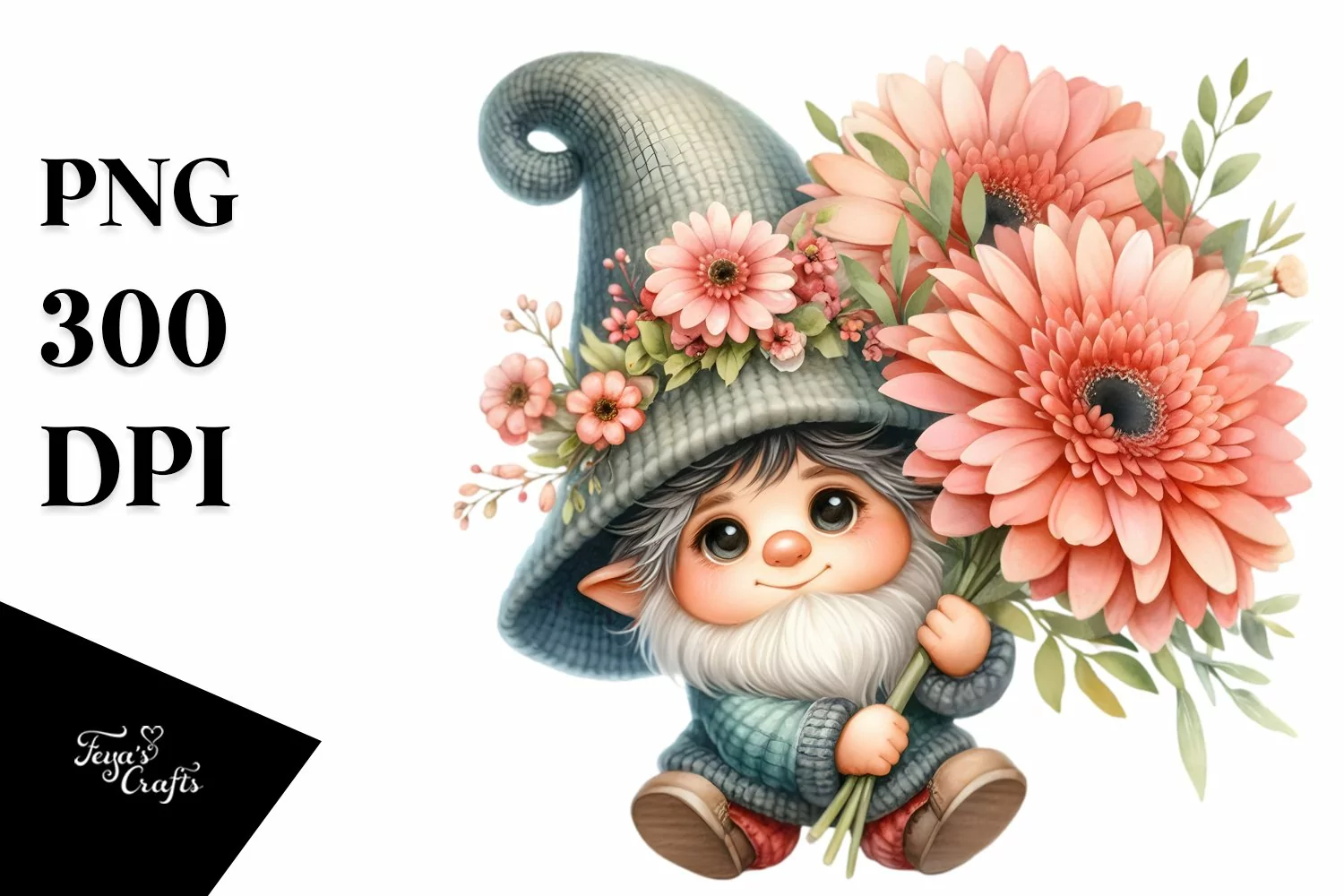 Similar Design Products to Watercolor Baby Gnome with Gerbera Floral Ornament PNG