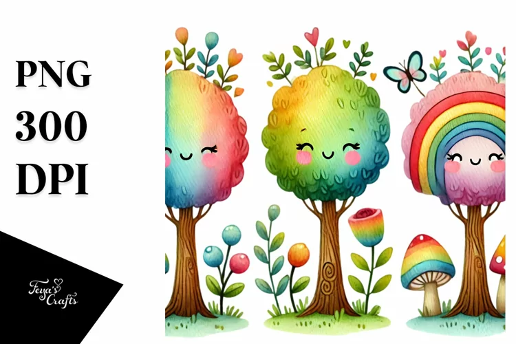 Similar Design Products to Cute Rainbow Trees Watercolor PNG