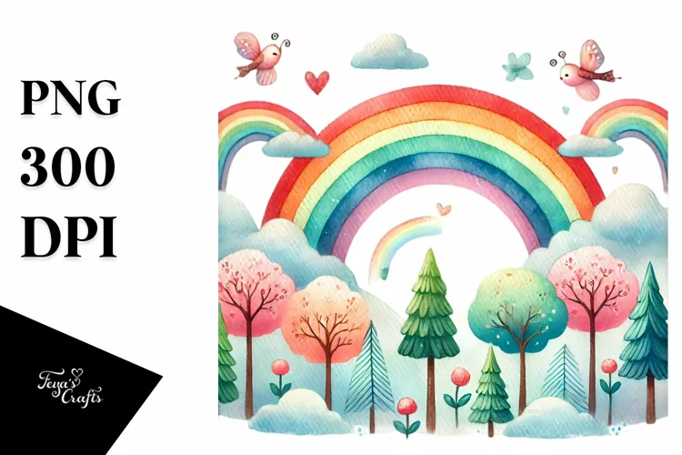 Similar Design Products to Cute Rainbow Trees Watercolor PNG