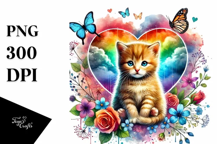 Watercolor Baby Cat Adorned Whitebackground Bigheart