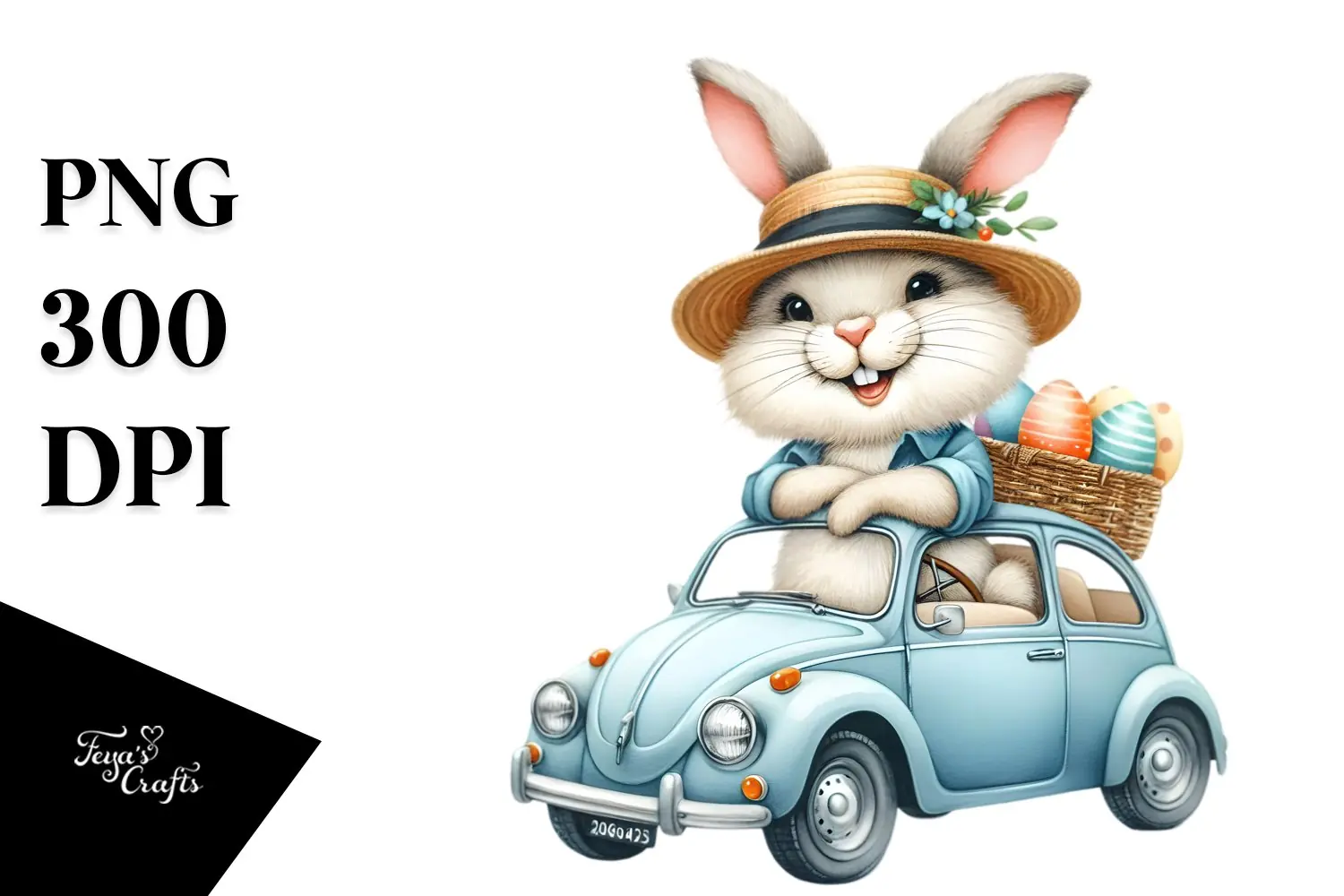 Watercolor Goofy Bunny with Modern Dressing PNG example image 1