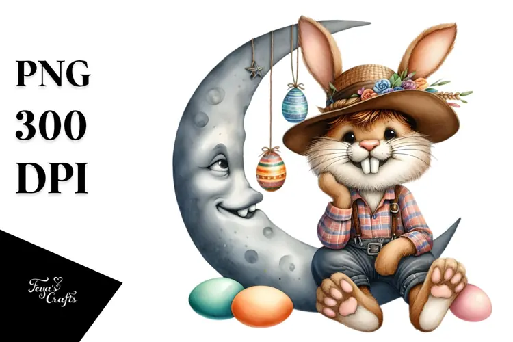 Similar Design Products to Goofy Bunny on Half Moon PNG