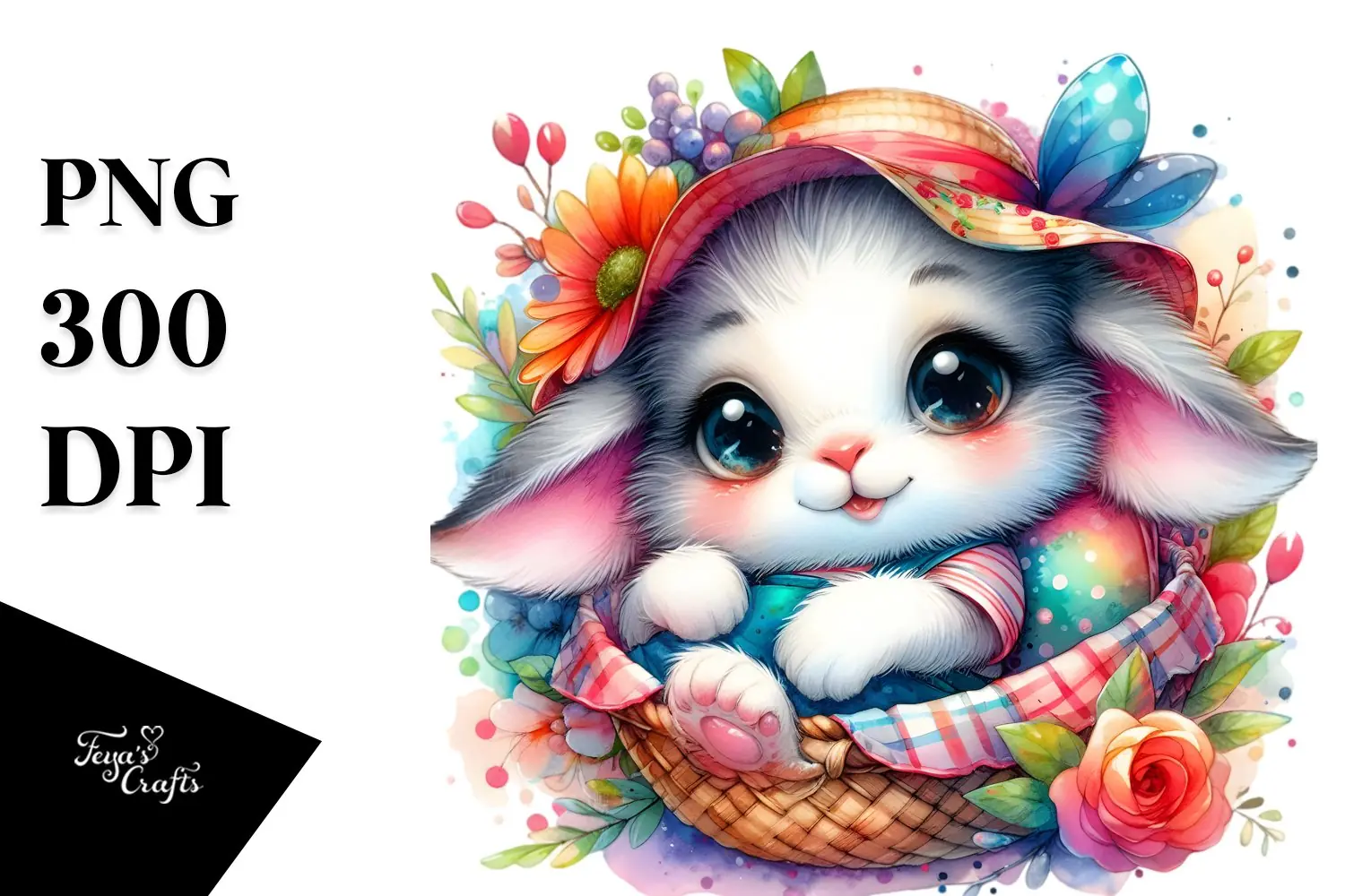 Watercolor Cute Baby Crazy Vibrant Bunny Cradle Bigeyes Summerclothes