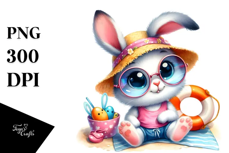 Baby Bunny with Summer Clothes, Vibrant PNG example image 1