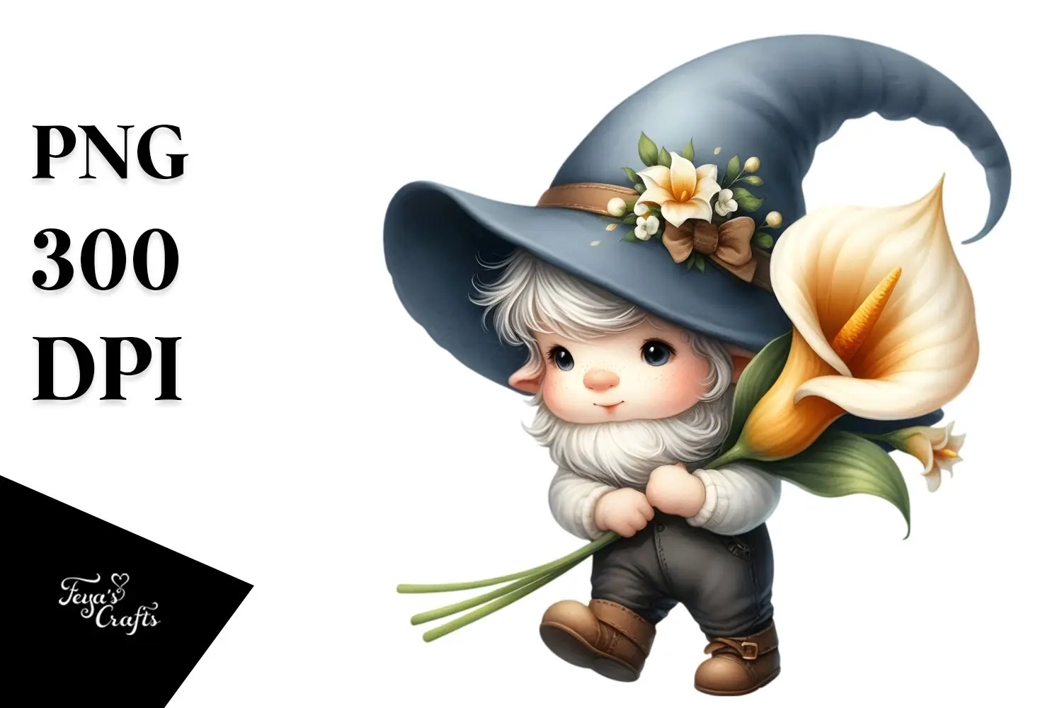 Similar Design Products to Cute Watercolor Baby GNOME with Big HAT PNG