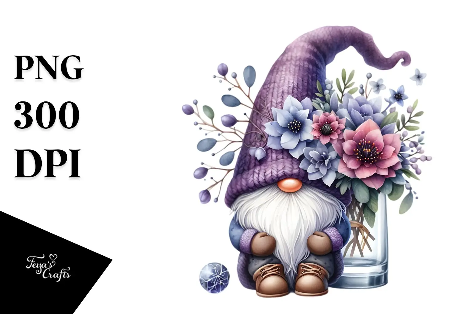 Similar Design Products to Gnome with Violet Floral Ornament PNG