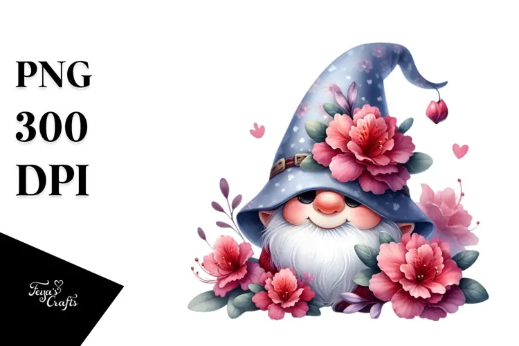 Similar Design Products to Cute GNOME with Rhododendron Floral Frame PNG