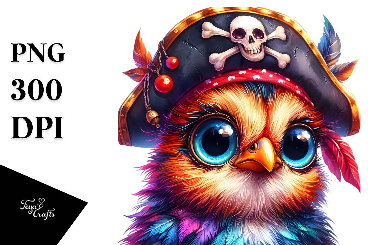 Watercolor Cute Baby Vibrant Rooster Whitebackground Bigeyes Piratehat