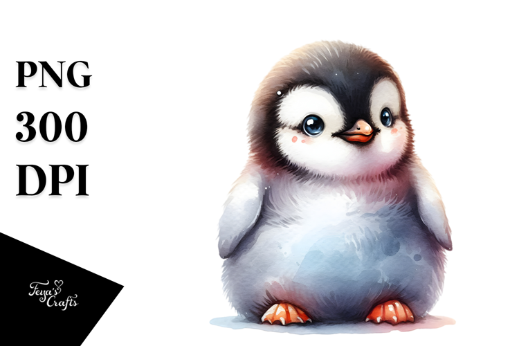 Watercolor Baby Digital Penguin Whitebackground Bigeyes Smallbody