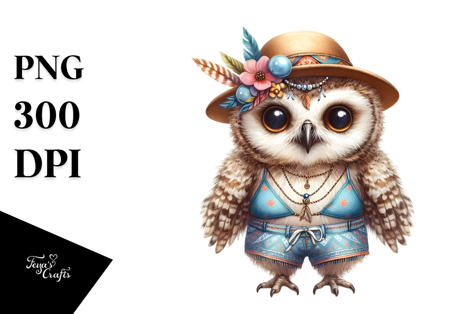 Digital Watercolor Adorned Owl Beachwear PNG example image 1