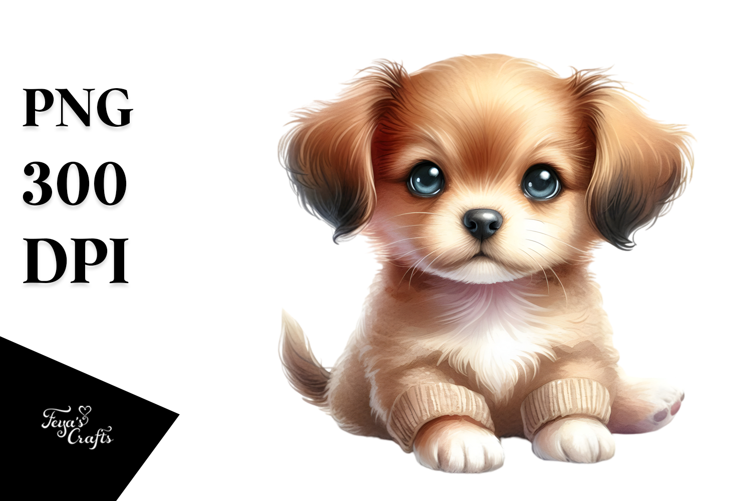 Watercolor Cute Baby Digital Puppy Whitebackground Bigeyes Smallbody