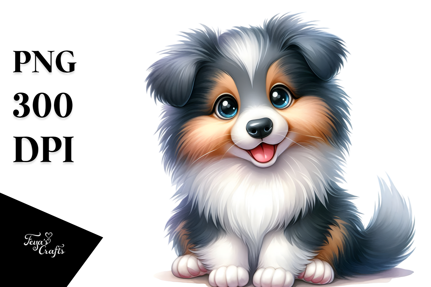 Cartoon Watercolor Baby Happy Whitebackground Collie Bigeyes