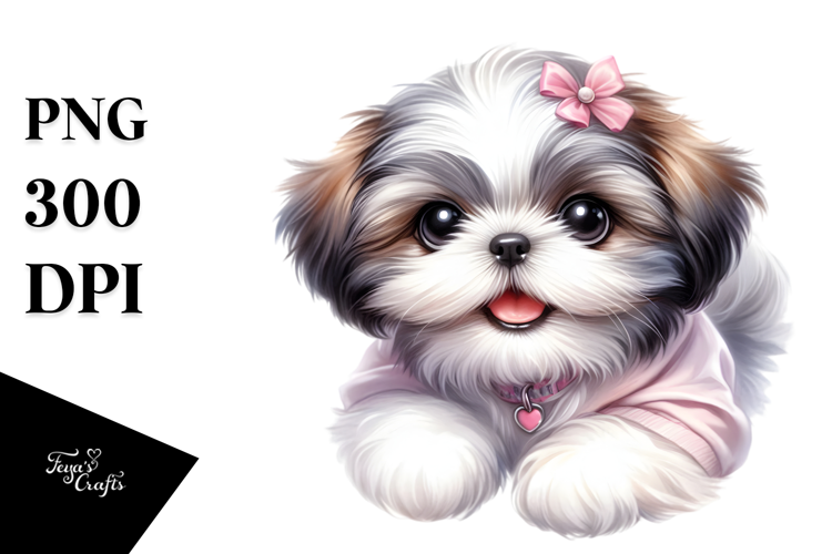 Cartoon Watercolor Cute Baby Happy Whitebackground Shihtzu Bigeyes