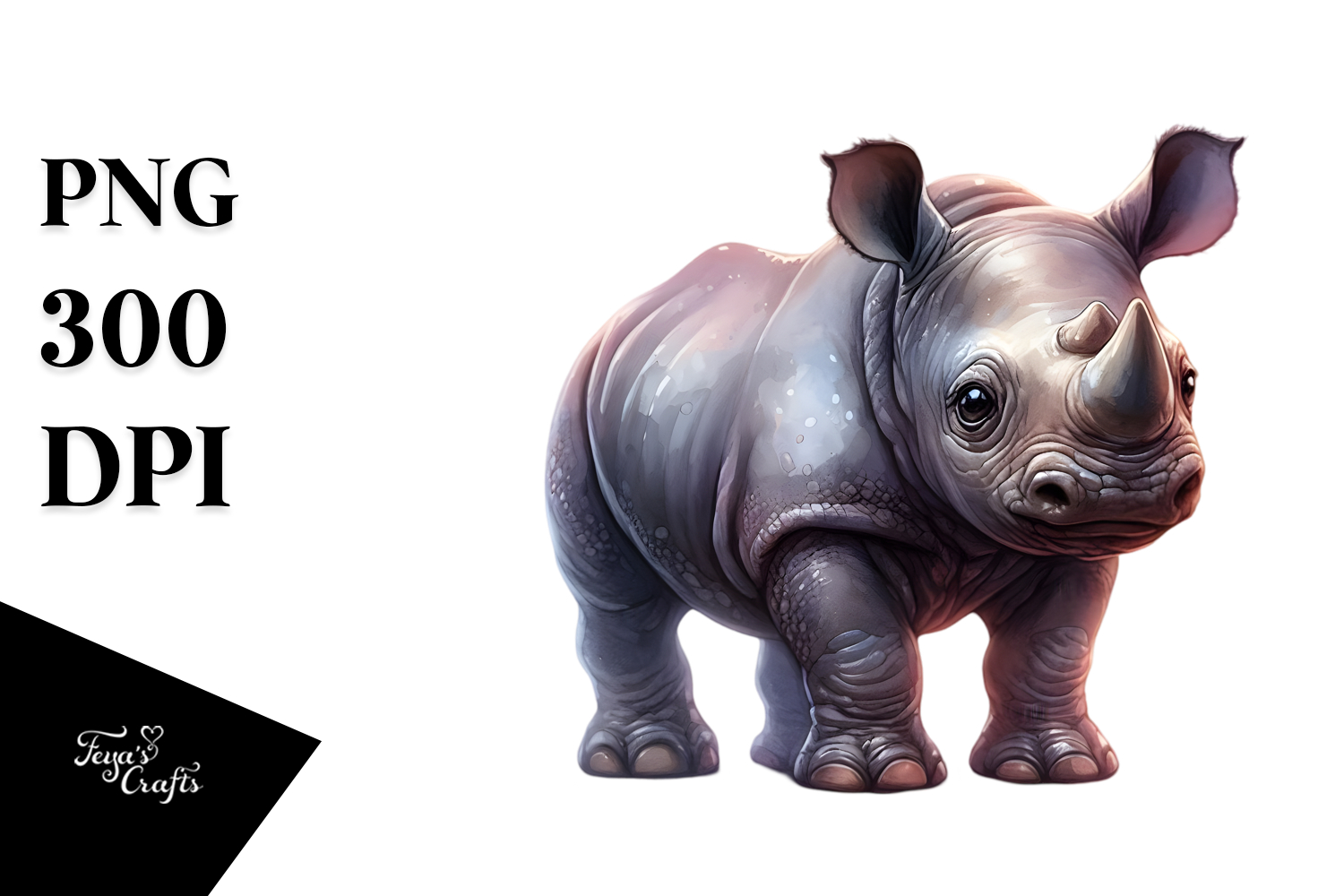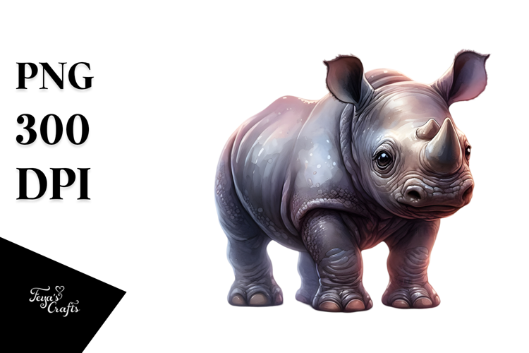 Watercolor Cute Baby Digital Rhino Adorned Whitebackground Bigeyes Smallbody